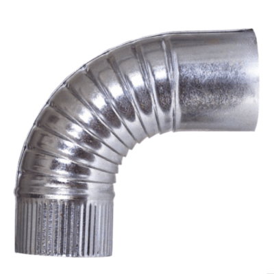 Codo de acero galvanizado corrugado, diseñado para permitir cambios de dirección en sistemas de evacuación de gases y humos en equipos de calefacción a leña o biomasa. Su estructura corrugada proporciona una flexibilidad estructural superior, permitiendo absorber las dilataciones térmicas del material sin comprometer la estanqueidad del sistema. Fabricado con un acabado galvanizado de alta calidad, ofrece una barrera robusta contra la corrosión y el desgaste provocado por las altas temperaturas constantes.