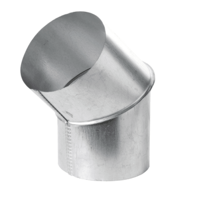 Codo de acero galvanizado liso, diseñado para realizar cambios de dirección precisos en sistemas de evacuación de gases y humos en equipos de calefacción a leña o biomasa. Su superficie interior y exterior totalmente lisa minimiza la fricción del aire, optimizando el tiraje natural y reduciendo significativamente la acumulación de hollín y residuos de combustión. Fabricado con un acabado galvanizado de alta calidad, garantiza una protección eficaz contra la corrosión y mantiene una estética limpia y uniforme en instalaciones a la vista.