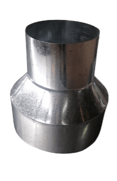 Reducción Copla de acero galvanizado de alta resistencia, diseñada específicamente para permitir la transición segura y hermética entre ductos de diferentes diámetros en sistemas de calefacción a leña o biomasa. Su estructura cónica permite adaptar la salida del equipo a cañones de mayor o menor dimensión, asegurando la continuidad del flujo de gases sin obstrucciones ni fugas. El acabado galvanizado proporciona una barrera robusta contra la oxidación y el estrés térmico derivado de la combustión constante.